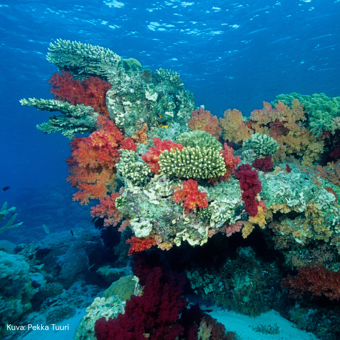 Merten tarinat Musiikkitalossa Jopa neljännes merten lajistosta ja lähes miljardi ihmistä on riippuvaisia hyvinvoivista koralleista. Koralliriutat ovat monimuotoisuudeltaan kuin pinnanalaisia sademetsiä. Itämeressä ei ole koralleja, mutta meriajokasniittymme tarjoavat koralliriuttojen tapaan suojaa ja ruokaa lukuisille lajeille.