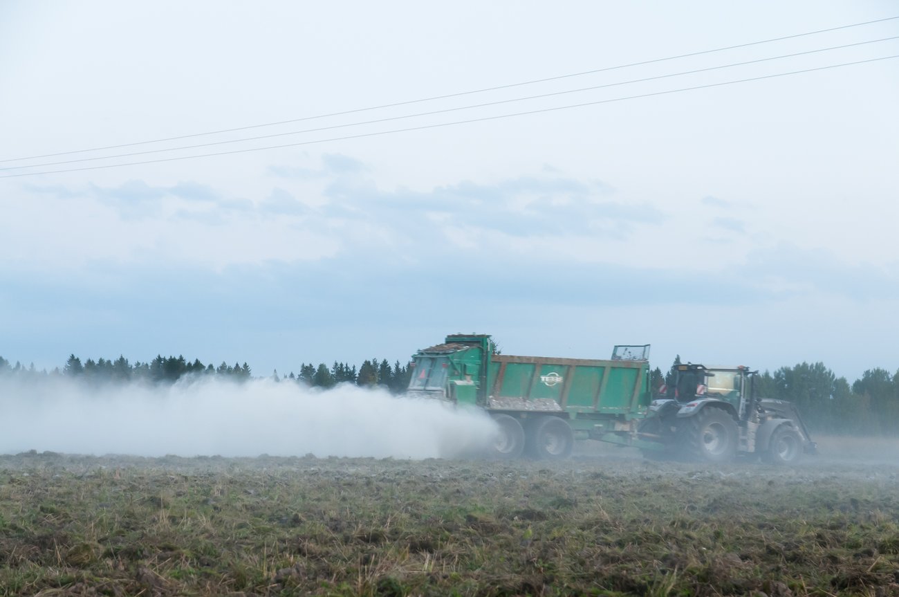 Levitetiin pelloille kipsiä ja rakennekalkkia ravinteiden pidättämiseksi maaperässä.